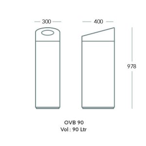 The OVB 90 has a waste holding capacity of 90 litres, suitable for moderate-use public areas.